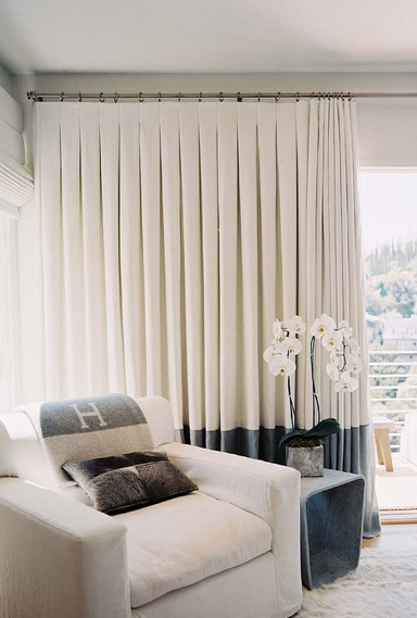 Inverted Pleat Drapery is a unique curtain design in that while neatly pleated, it still gives off a casual, relaxed vibe. This drapery style is better suited for decoration; it is not ideal for frequent use. Because the inverted pleat drapery style is not recommended for frequent opening and closing, we suggest placing it with a roller shade if you need to control light.